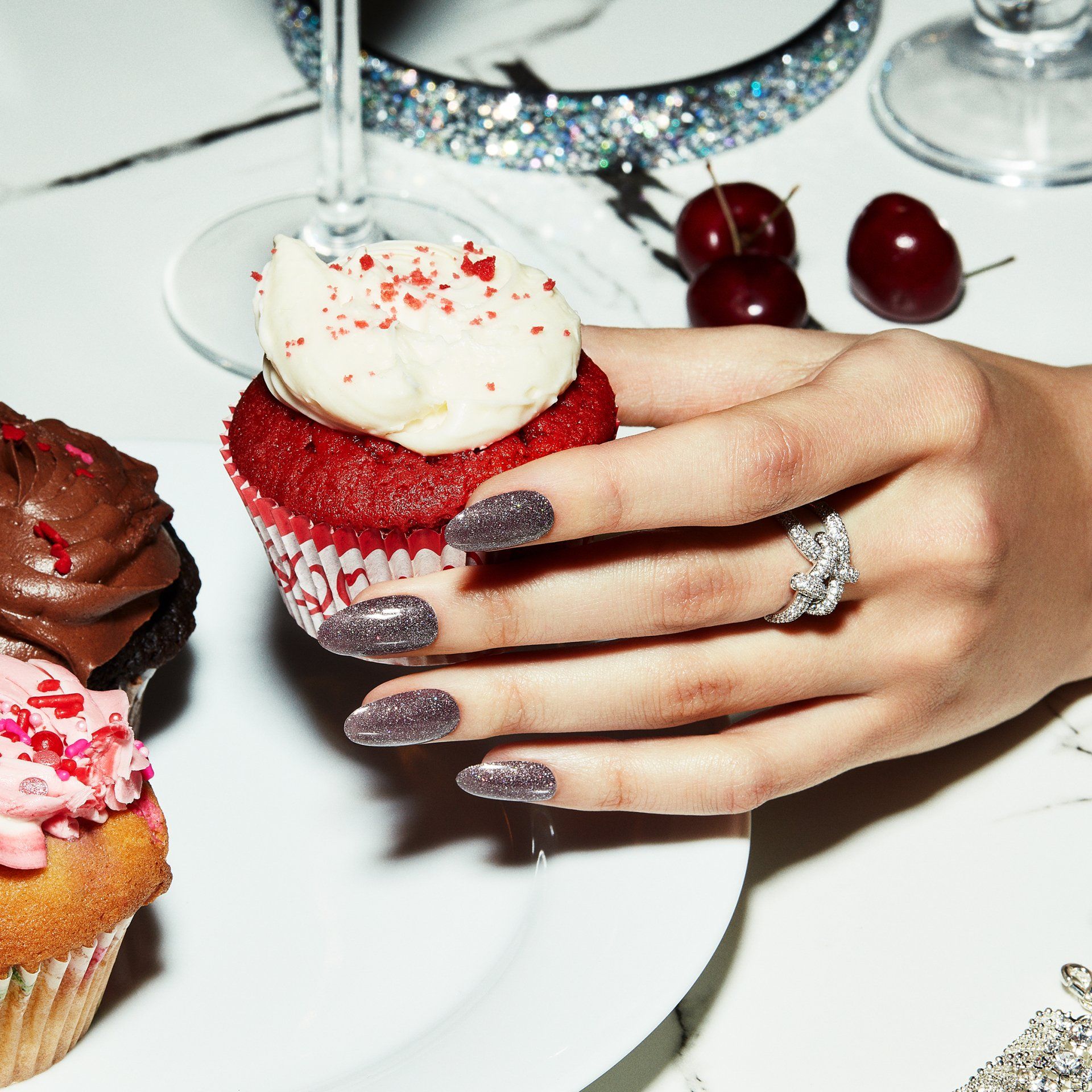 SHELLAC met nail art, zoals glitter, folie, details